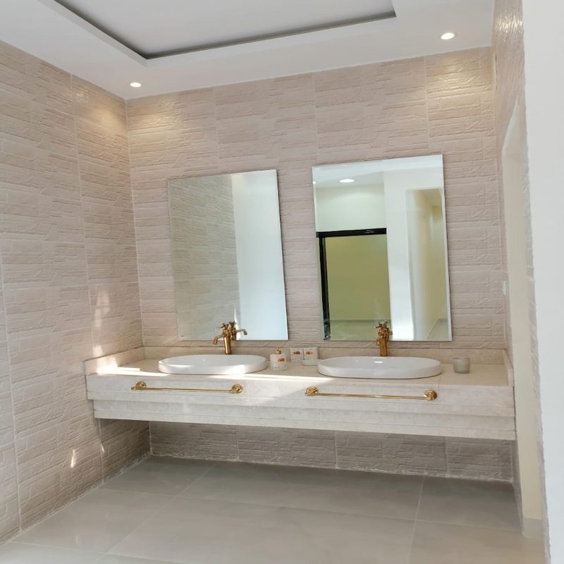 مغسلة رخام كريمو لايت عماني مع أحواض خزف