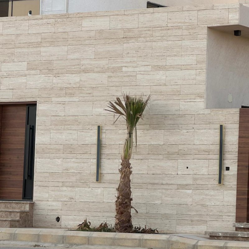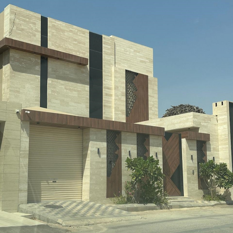 واجهة فيلا رخام ترفنتينو بيج مع خشب معالج